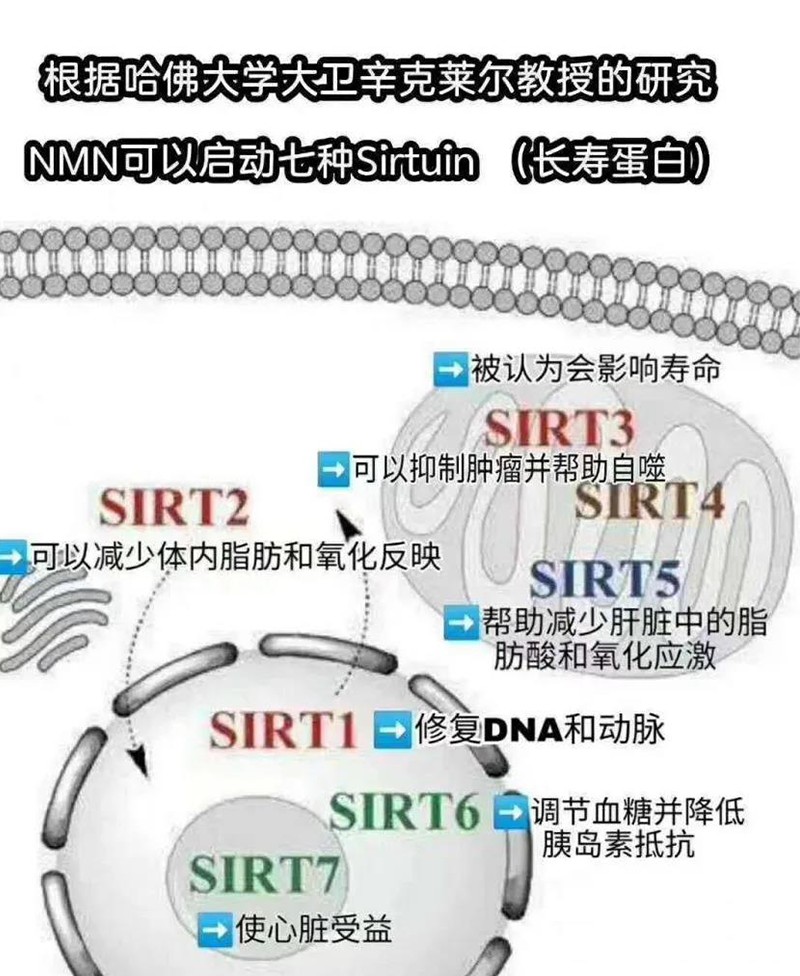 NMN可以有效激活Srituins“長壽蛋白”家族 7條長壽蛋白基因~ (SIRT1-SIRT7)