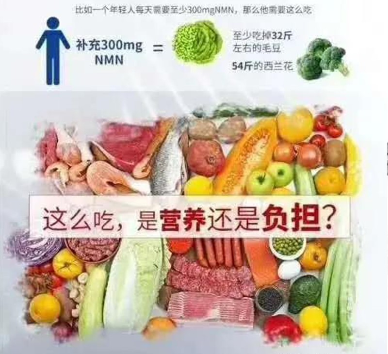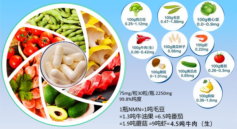 1瓶NMN=1噸毛豆、1.3噸牛油果6.5噸番茄、1.9噸蘑菇、9噸蝦、4.5噸牛肉(生)提升人體80%的壽命!