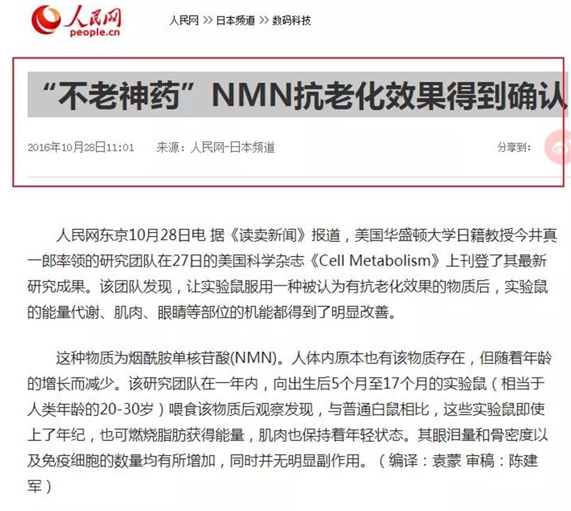 而最早關(guān)于NMN的報道,注意,這個新聞在2016年的時候就全球大肆報道NMN了。