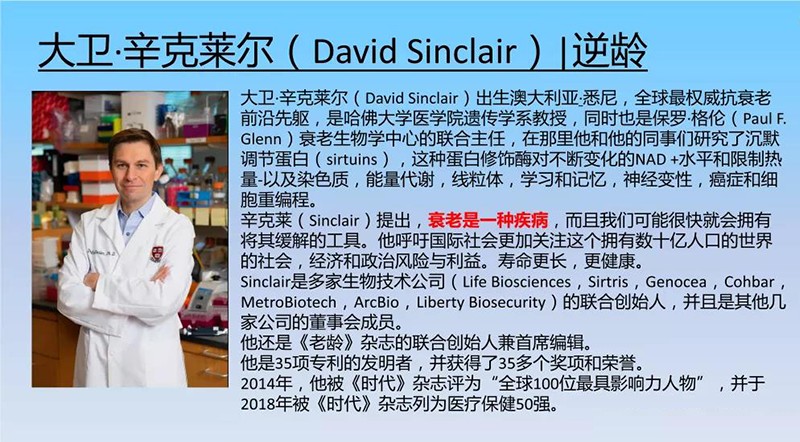 而David本人也因為其抗衰老領(lǐng)域的貢獻(xiàn)被授予澳大利亞勛章和《時代》2018年健康風(fēng)云人物50人。