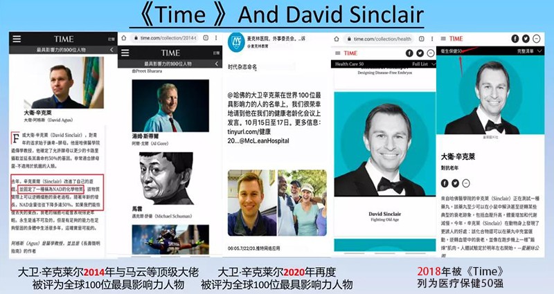 ③哈佛大學(xué)醫(yī)學(xué)院教授大衛(wèi).辛克萊爾因為研究NMN被美國《時代周刊》評為“全球100位最具影響力人物”