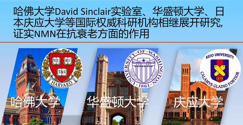 ④NMN的延長壽命和抗衰功效得到哈佛醫(yī)學(xué)院,華盛頓大學(xué),日本慶應(yīng)大學(xué)等世界頂尖科研機構(gòu)的支持