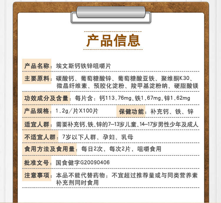 埃文斯鈣鐵鋅咀嚼片