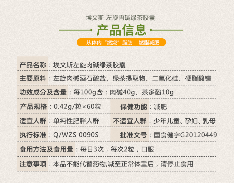 埃文斯左旋肉堿綠茶膠囊