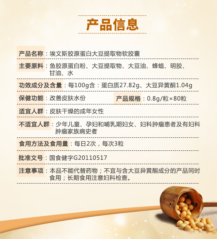 埃文斯膠原蛋白大豆提取物軟膠囊