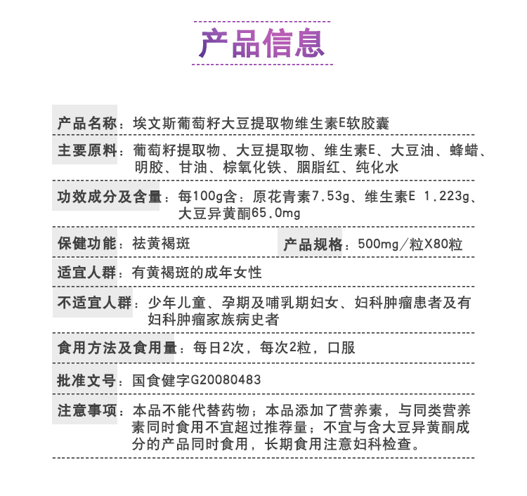 埃文斯葡萄籽大豆提取物維生素E軟膠囊