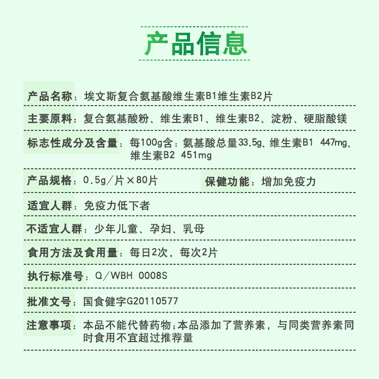 埃文斯復(fù)合氨基酸維生素B1維生素B2片