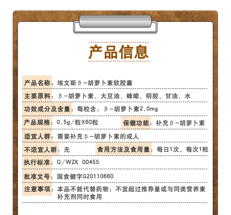 埃文斯β-胡蘿卜素軟膠囊