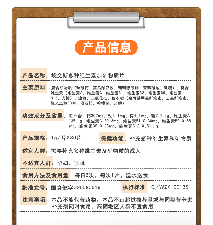 埃文斯多種維生素加礦物質(zhì)片