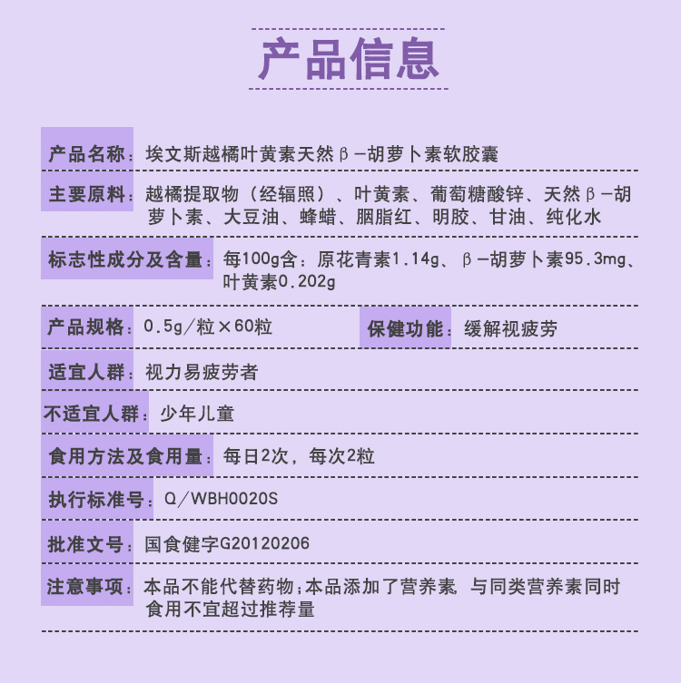 埃文斯越橘葉黃素天然β-胡蘿卜素軟膠囊